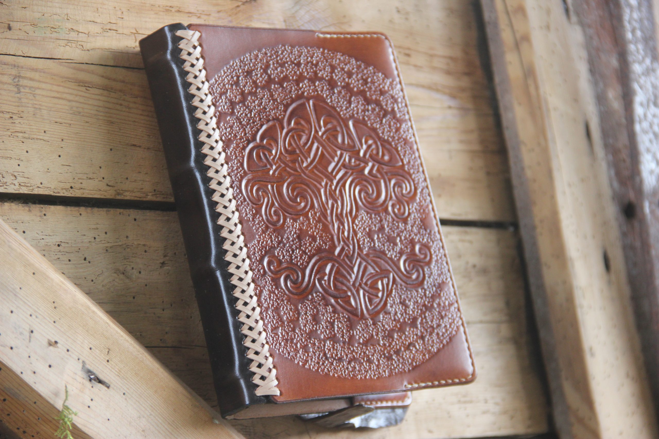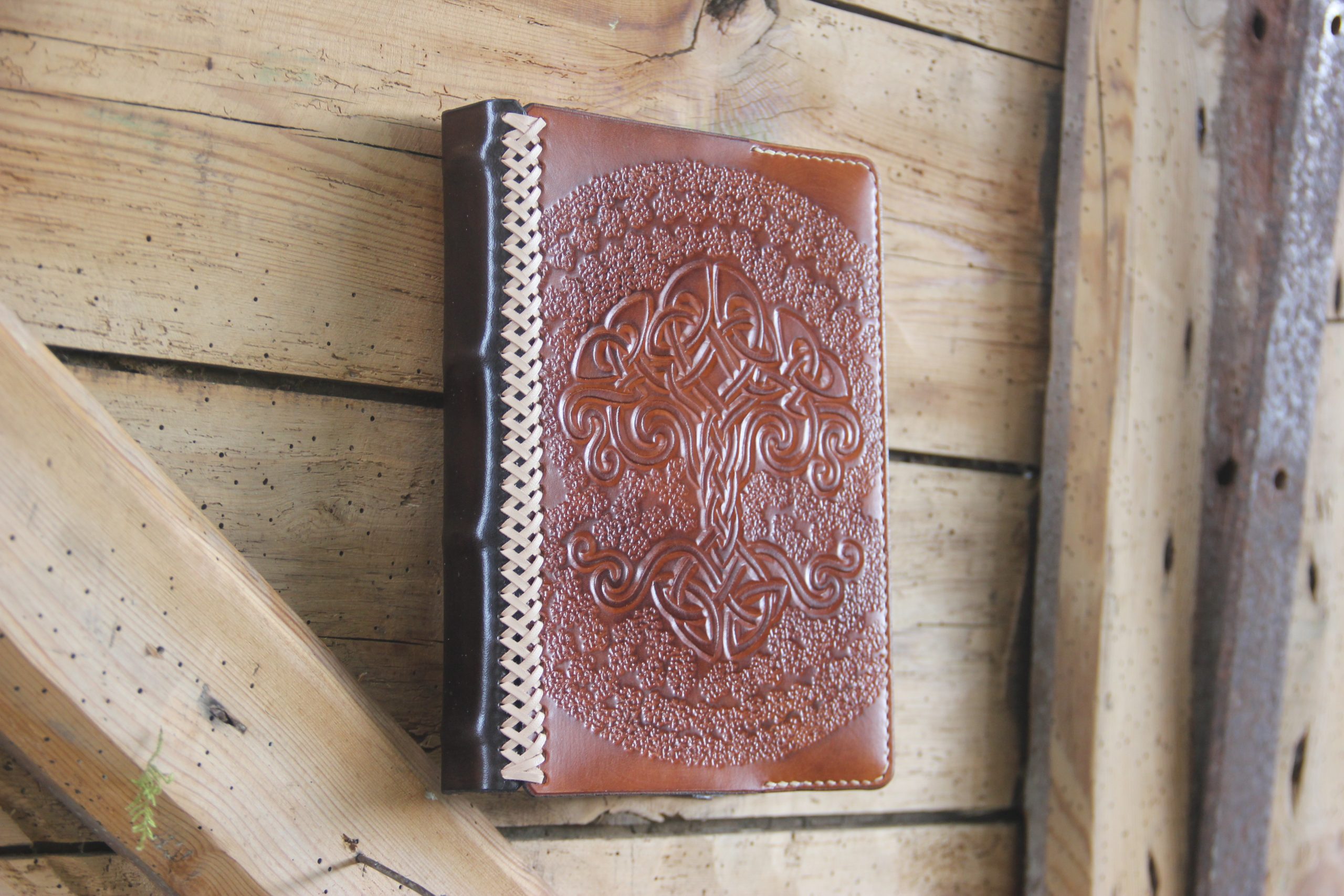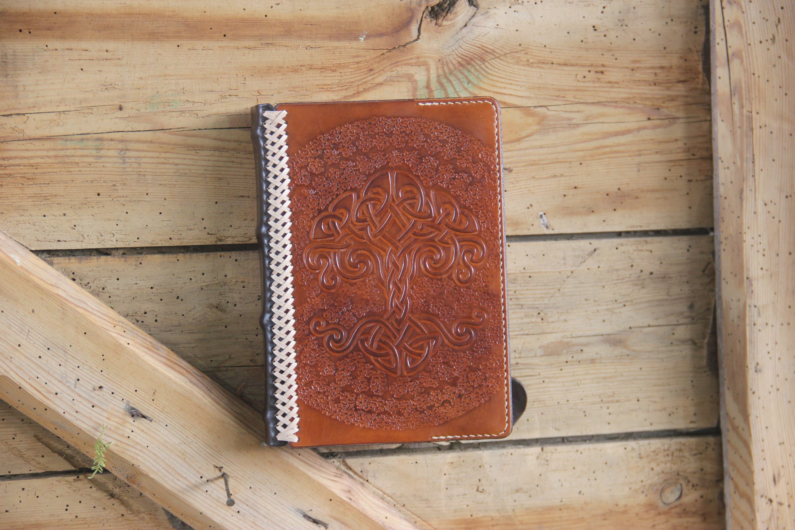 Repoussage d’un arbre de vie celtique sur la couverture